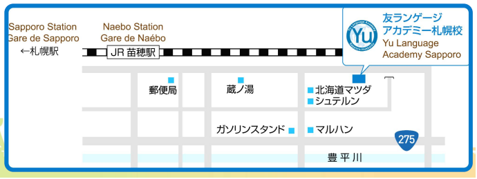 友語言學院札幌校為日本法務省公告之優良適正校,學校位於苗穗站附近,距離札幌車站一站的距離。設有長期升學課程及短期課程,並開設日本留學考試、日本能力試驗及就業對策講座等的課程。針對想要升學或就業的學生,學校提供升學及就業輔導。附有學生宿舍,位在學校附近,讓學生能安心地享受學校生活。另外,學校設有獎學金制度,對於想要打工的同學,學校也有打工介紹。
